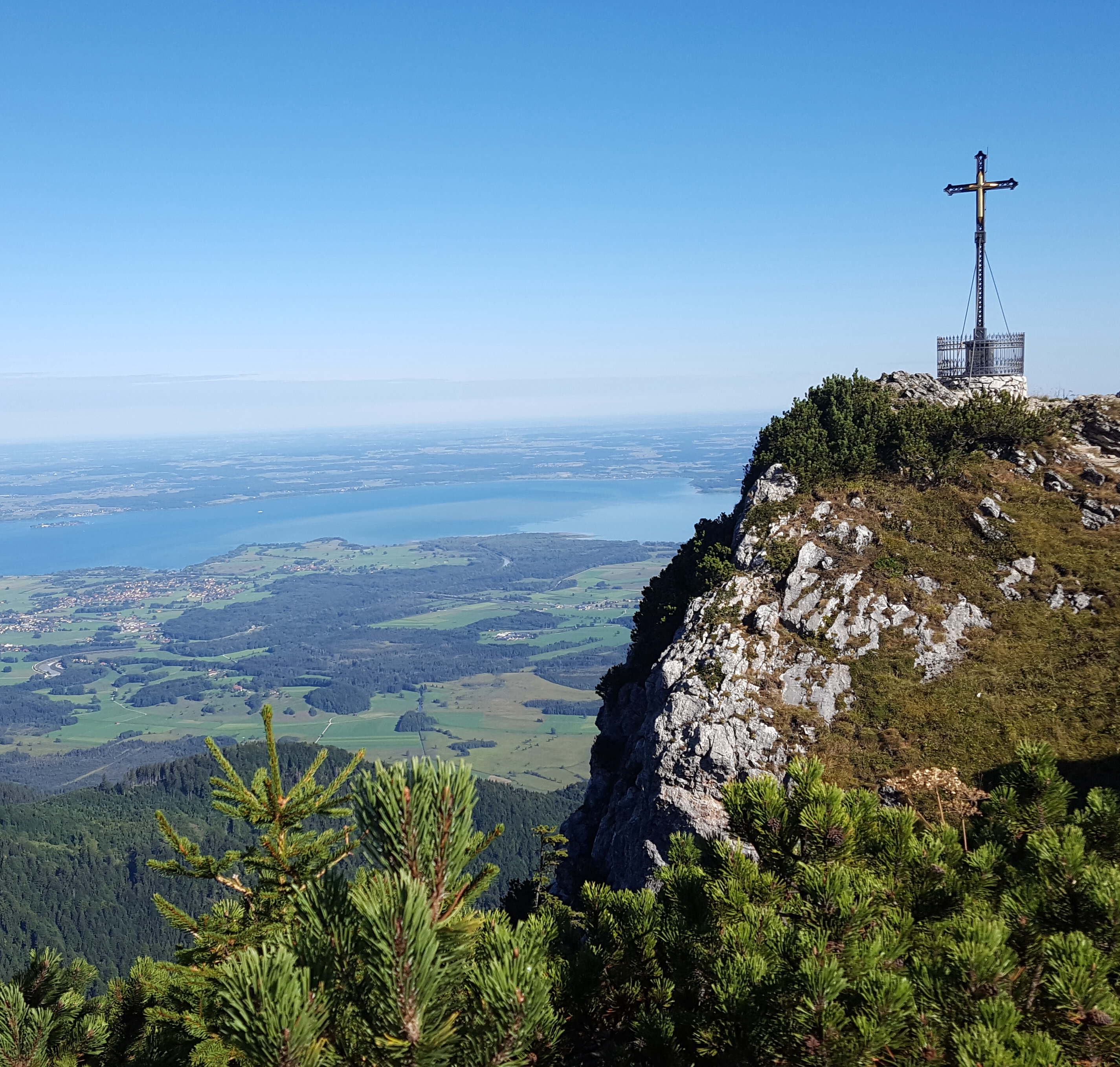 Das Gipfelkreuz auf dem Hochfelln wurde am 25.08.1886 zur Zentenarfeier König Ludwigs I. eingeweiht. Es wurde in der Maxhütte Bergen gegossen und mit Hilfe von 40 Chiemgauer Bürger auf den Gipfel getragen. Heute ist es eines der ausdrucksvollsten Denkmäler und Zeugnis einer patriotischen Heimatliebe der damaligen Zeit.